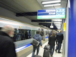 翌日、ニューキャッスルへ移動するため、今回はターミナル5にあるソフィテルホテルに宿泊。よって、ターミナル1からターミナル5へ移動します。ターミナル1~4は連絡通路で繋がっていますが、ターミナル5は離れているため電車で移動です。しかもモノレールなどではなく、ヒースロー空港からロンドン中心部を結ぶヒースロー・エクスプレスを使います。