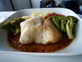 ウェルカムシャンパンのあと、離陸。水平飛行になるとお楽しみの機内食。まずはビールで。瓶ビールで喉を潤します。あられが入っていないミックスナッツをもらうと、エコノミーとの違いを実感します。小さな幸せ・・・
